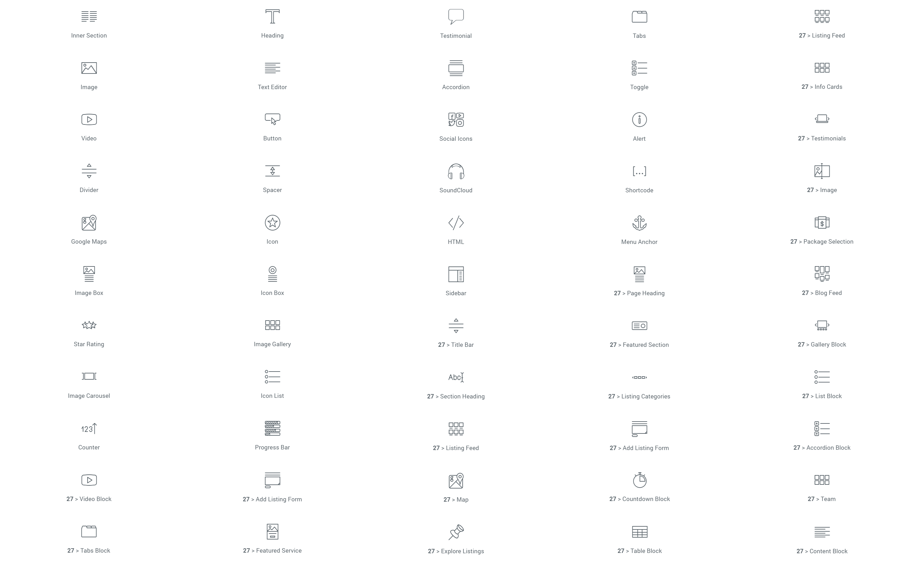 Elementor widgets 50+ Elements available to design pages out of the box. Add more using elementor plugins and addons